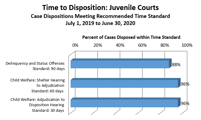 How it is measured: Time to Disposition focuses on resolved cases rather than cases in progress. It is calculated as the percentage of cases disposed within the time standard set for each case type by the Utah Judicial Council. Any days in which a case is inactive because proceedings are stayed or a warrant is active are subtracted from the total number of days.