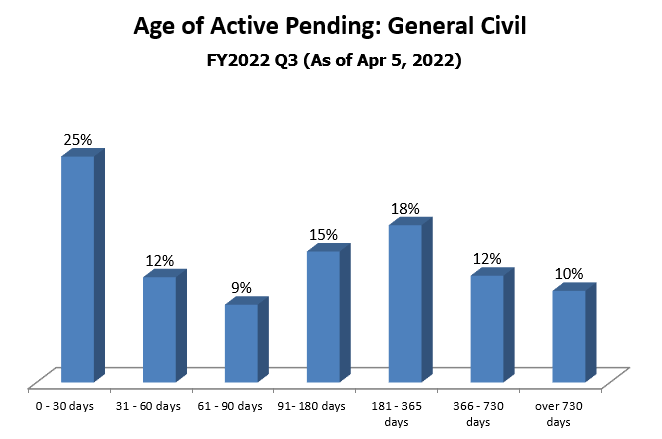 How it is measured: Case pending age is measured from the time of filing to the time of measurement. Only active cases (cases in which the court is able to proceed) are included in this measure.